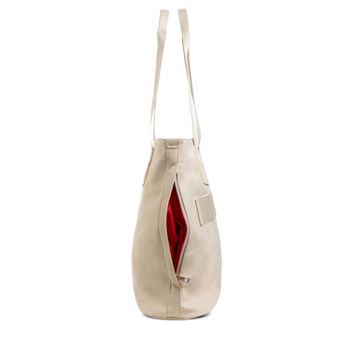 Umhängetasche aus Kunstleder mit versteckten Taschen und Trolleyband