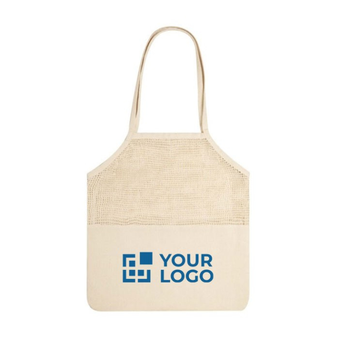 Einkaufsbeutel aus Baumwolle mit Netz als Kundenpräsent, 220 g/m2