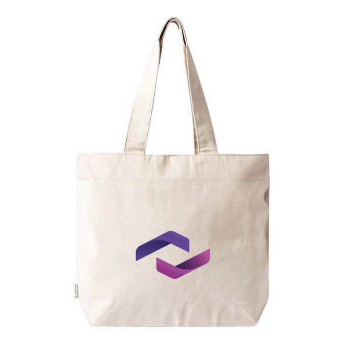 Tasche aus recycelter Baumwolle mit 280 g/m² und Reißverschluss, damit der Inhalt besser geschützt ist. Sie verfügt über lange Henkel, sodass Sie sie bei täglichen Wegen bequem über der Schulter tragen können. Die Tragkraft von bis zu 14 kg hilft Ihnen, Unterlagen, Kataloge oder Büromaterial ohne Aufwand zu transportieren. Große, praktische Fläche zur Personalisierung mit Logo und Kampagnenbotschaften. Eine nützliche Lösung für Messen, interne Schulungen oder Willkommensübergaben am Verkaufsort.