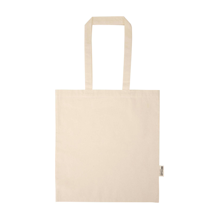 Tote Bag aus recycelter Baumwolle und recyceltem Kunststoff mit GRS-Zertifizierung (Global Recycled Standard), konzipiert für den täglichen Einsatz im Arbeitsumfeld und bei Veranstaltungen. Sie verfügt über ein geräumiges Hauptfach und ein Gewebe mit 180 g/m², das hilft, die Form zu behalten und einen gut sichtbaren Logodruck ermöglicht. Sie trägt bis zu 5 kg und eignet sich zum Transport von Katalogen, Unterlagen oder Büroartikeln. Die 30 cm langen Schulterriemen erhöhen den Tragekomfort unterwegs. Nützlich als Markenfläche auf Messen und bei HR-Maßnahmen.