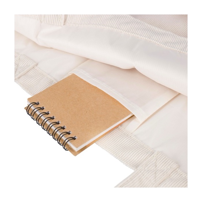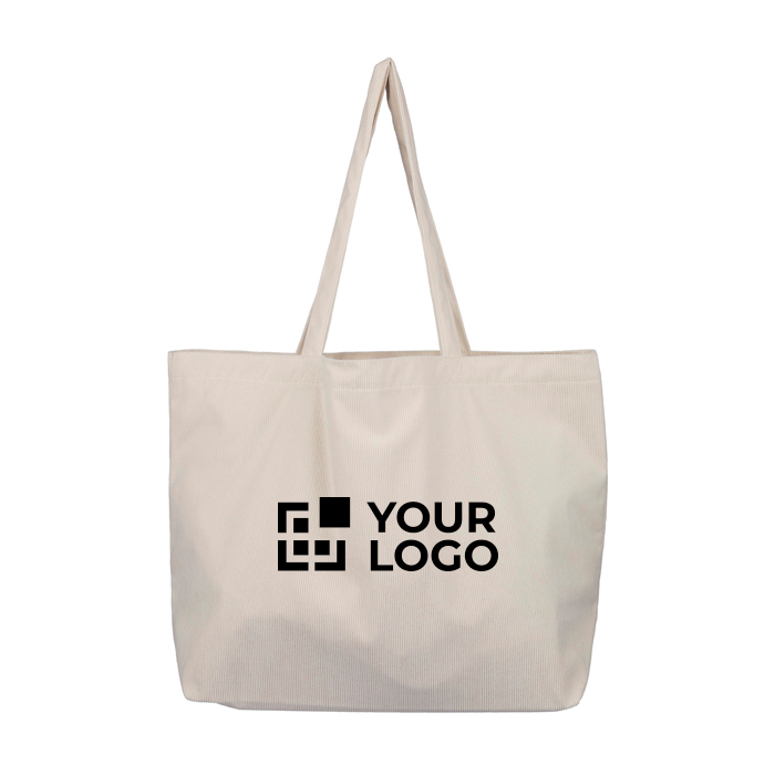 Cordtasche mit langen Henkeln, gedacht für den Alltag im Büro, auf Messen oder unterwegs. Sie verfügt über ein großes Hauptfach von 51x15x33cm, in dem Sie Ordner, Kleidung oder Arbeitsmaterial problemlos transportieren können. Die Innentasche von 10x10cm hilft Ihnen, Schlüssel, Karten oder kleines Zubehör getrennt aufzubewahren, damit Sie alles schnell finden. Sie wird einzeln verpackt geliefert und ist bereit für interne Ausgaben oder punktuelle Markenaktionen bei Veranstaltungen und am Point of Sale.