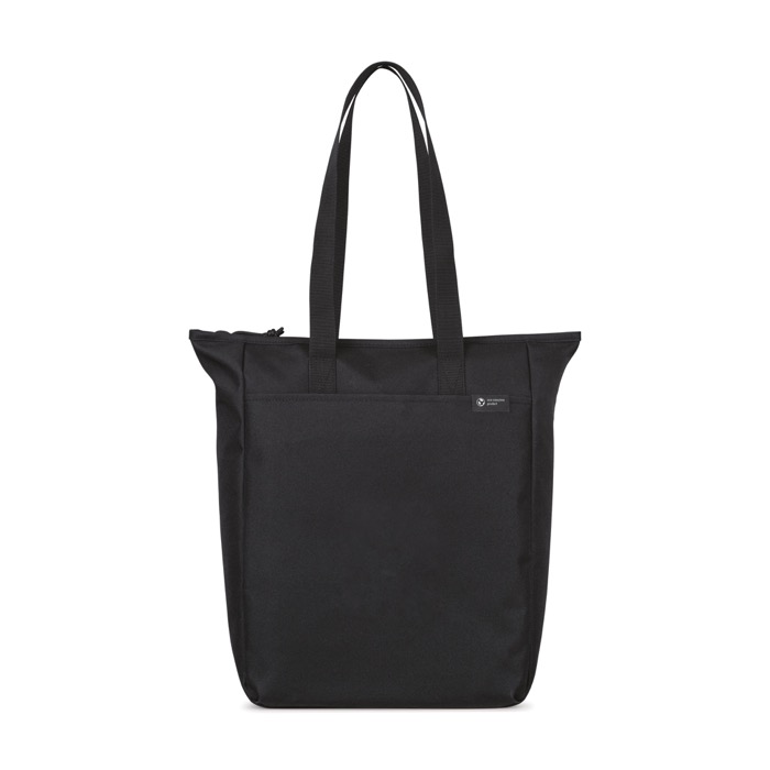 Moderne und nachhaltige Tragetasche aus recyceltem Stoff und Riemen aus Plastikflaschen. Sie verfügt über ein geräumiges Hauptfach mit Reißverschluss, um den Inhalt sicher zu verstauen, eine leicht zugängliche Fronttasche und mehrere Innentaschen mit Reißverschluss für eine bessere Organisation von Accessoires und persönlichen Gegenständen. Im Inneren befindet sich das virtuelle Identifikationssystem und der Produktpass AWARE™, mit denen die Herkunft der recycelten Materialien über einen einzigartigen QR-Code zurückverfolgt und überprüft werden kann.