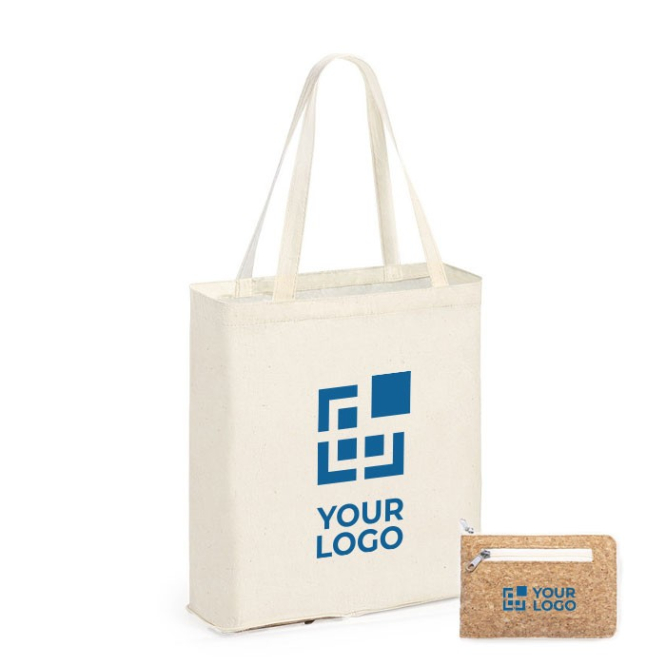 Mit einem Naturkorkboden wird diese Baumwolltasche mit Logo genau das Werbemittel sein, das noch in Ihrer Werbekampagne fehlt, um Ihre Firma bekannt zu machen.
