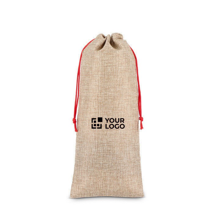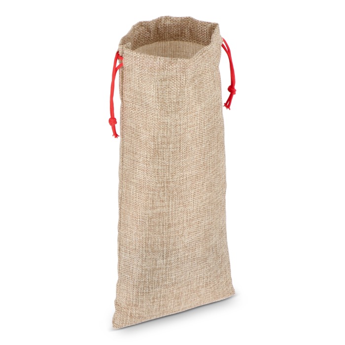 Geschenktasche im Jute-Stil für Flaschen, verleiht Präsentationen eine rustikale Note und zieht sofortige Aufmerksamkeit auf sich – ideal für Markenauftritt.