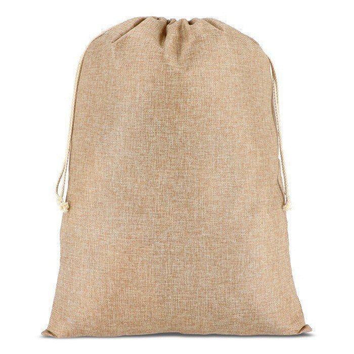 Verpacken Sie Ihre Geschenke in dieser geräumigen Geschenktüte im Jute-Stil mit Kordelzugverschluss. Sie ist strapazierfähig und wiederverwendbar und eignet sich perfekt zum Aufbewahren und Transportieren großer Geschenke. Gleichzeitig verleiht sie Ihren Weihnachtsfeierlichkeiten einen rustikalen und festlichen Charme.