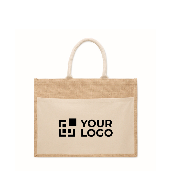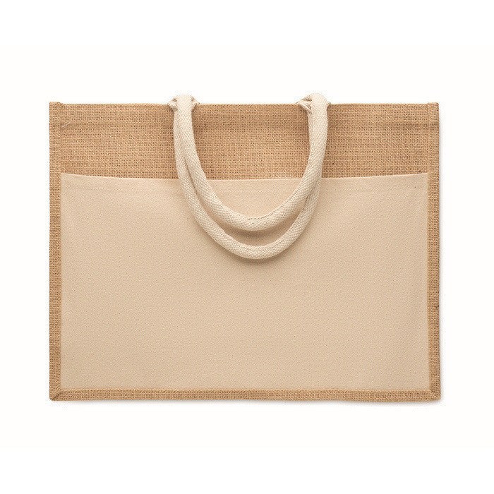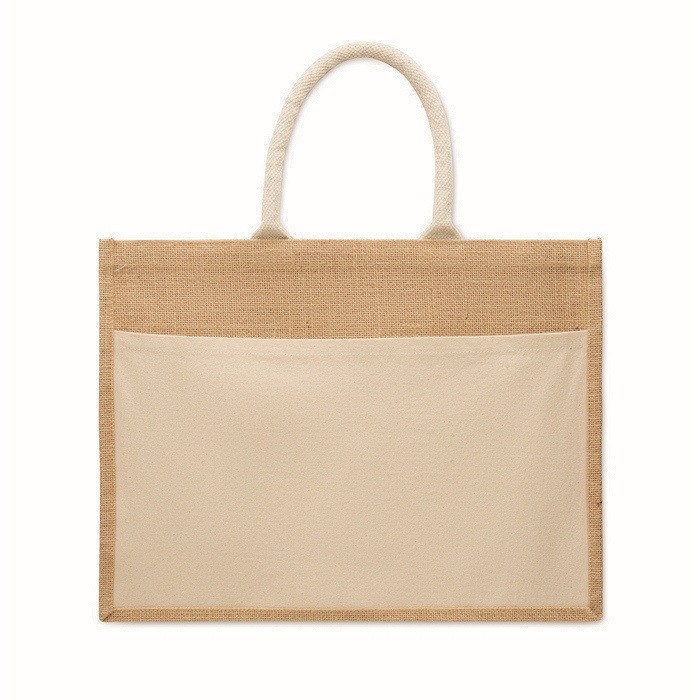 - Einkaufstasche aus laminiertem Jute mit Fronttasche