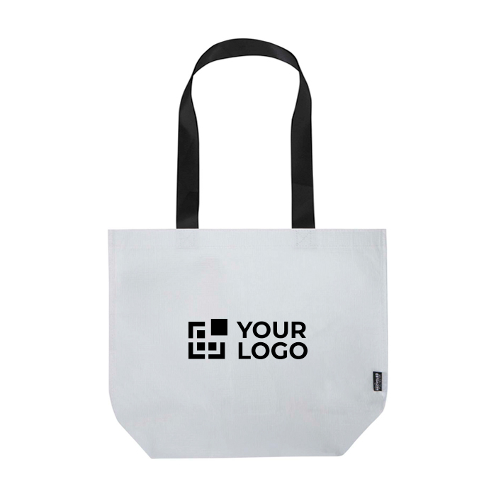 Tote Bag aus recyceltem Kunststoff (RPET) mit 150 g/m², GRS-Zertifikat (Global Recycled Standard) und doppelter Laminierung, um die Haltbarkeit zu erhöhen und bei Bedarf Wasserbeständigkeit zu bieten. Sie verfügt über ein offenes, geräumiges Hauptfach, verstärkte Tragegriffe für den dauerhaften Einsatz und einen breiten Boden, der die Ladung besser ausnutzen hilft. Sie trägt bis zu 10 kg und bietet ein Fassungsvermögen von 18 Litern – ausgelegt für den täglichen Rhythmus. Geeignet für Messen, Veranstaltungen und Massnahmen zur Markenpräsenz.