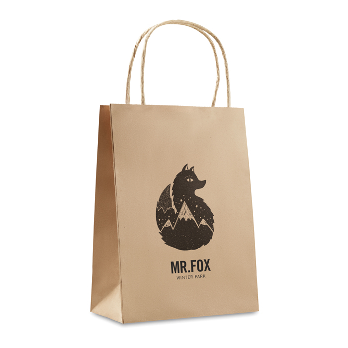 Kleine Kraftpapiertüte mit gedrehten Henkeln mit Logo, 115 g/m2