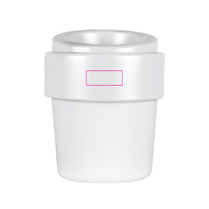 Dieser To-Go-Becher mit Logo ist eine umweltfreundliche Alternative zu Einwegartikeln. Er ist stapelbar, bruchsicher und zu 95 % aus Bio-Zuckerrohr-Kunststoff.