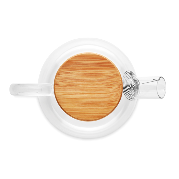 Teekanne aus Borosilikatglas mit Deckel aus Bambus. Inkl. Tee-Sieb. Füllmenge: 850 ml. Da Bambus ein natürliches Material ist, können Farbton und Maße pro Artikel variieren. Dies kann zu Abweichungen im Ergebnis der Veredlung führen.