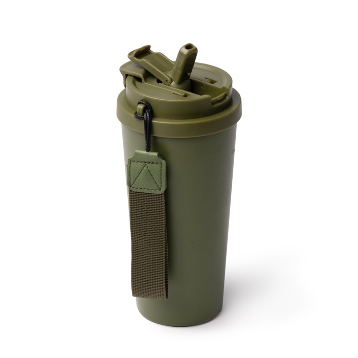 Thermobecher aus doppelwandigem Edelstahl 304, konzipiert für den täglichen Einsatz im Büro und unterwegs. Er verfügt über einen Deckel mit klappbarem Strohhalm und separatem Verschluss auf einer Seite sowie über einen Trinkauslass mit Kappe auf der gegenüberliegenden Seite. Das hilft, Verschütten zu vermeiden und erleichtert den Wechsel zwischen verschiedenen Getränkearten. Das Trageband lässt sich in Sekunden abnehmen und wieder anbringen, um ihn jeder Situation anzupassen. Eine praktische Option für Markenaktionen bei Veranstaltungen, beim Onboarding oder für Unternehmens-Merchandising.