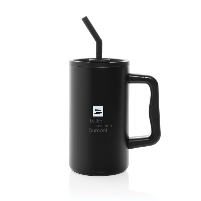 Der stabile Griff und sein breiter Boden machen diesen 800 ml Becher zum idealen Begleiter für die tägliche Wasseraufnahme im Büro. Er ist aus langlebigem, RCS zertifiziert recyceltem Edelstahl gefertigt und erfüllt alle Ihre Anforderungen an die Flüssigkeitszufuhr. Der robuste, doppelwandige, vakuumisolierte Becher ist mit einem Deckel, einem Strohhalm und einer Strohhalmspitze aus Silikon ausgestattet. Der Schraubdeckel ist vielseitig einsetzbar, sowohl für heiße als auch für eiskalte Getränke, und bietet eine Doppelfunktion - einen praktischen Trinkauslauf oder die Möglichkeit, einen Strohhalm zu verwenden. Für eine optimale Pflege empfehlen wir, diesen großen Becher von Hand zu waschen.