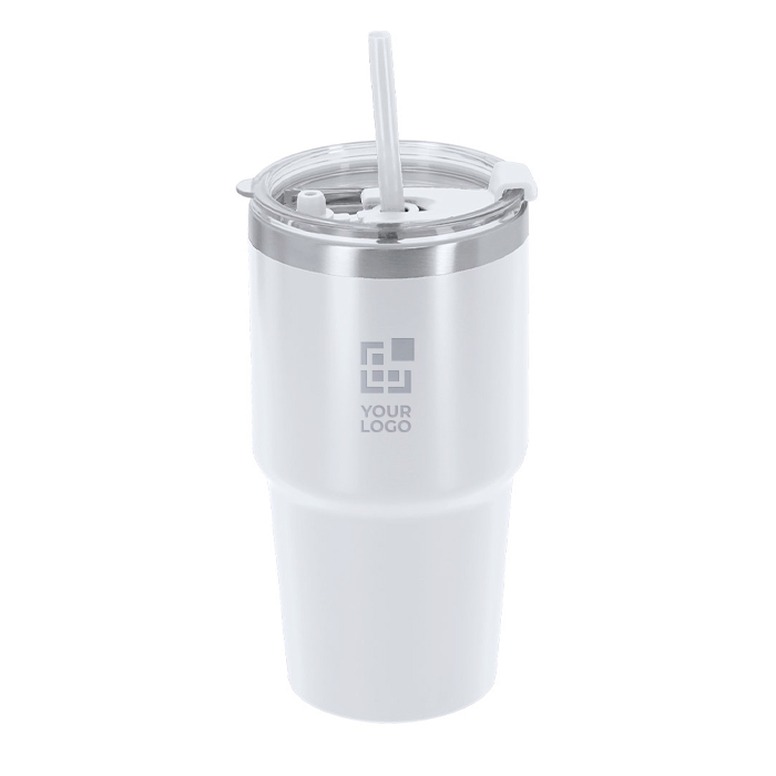 Thermobecher aus Edelstahl mit Doppelwand und Strohhalm 650 ml