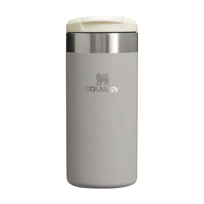 Der 350-ml-Reisebecher „Stanley AeroLight™“ hält Getränke 6 Stunden lang heiß und 8 Stunden lang kalt. Er ist leicht, luftdicht, spülmaschinenfest und BPA-frei. Passt in die meisten Getränkehalter im Auto.