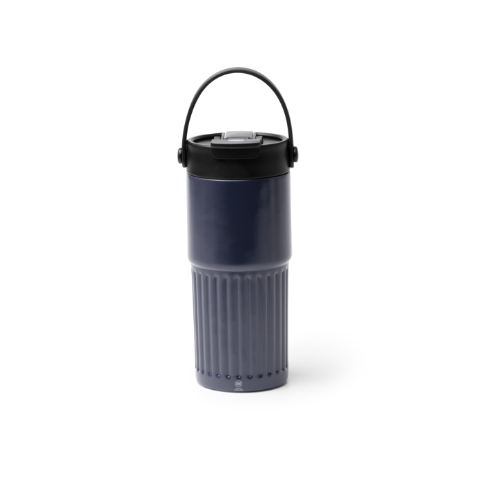 Thermobecher aus recyceltem Edelstahl 304 mit doppelwandiger Ausführung und 600 ml Fassungsvermögen, konzipiert für den komfortablen täglichen Einsatz im Büro oder unterwegs. Er verfügt über einen doppelten Deckel: auf der einen Seite ein Strohhalm mit separatem Verschluss und auf der anderen Seite ein Trinkdosierer zum direkten Trinken. Das Design kombiniert einen abgeschrägten Boden mit einem glatten oberen Bereich, sorgt für guten Halt und eine dezente Optik. Hinzu kommen ein klappbarer Tragegriff und ein rutschfester Boden für mehr Stabilität. Geeignet für Maßnahmen im Unternehmens-Merchandising und interne Veranstaltungen.
