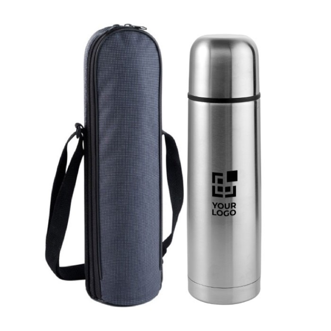 Für Kunden und Mitarbeiter, die ihre Thermosflasche mit auf Ausflüge nehmen, können Sie dieses Modell mit Hülle und Band verschenken.