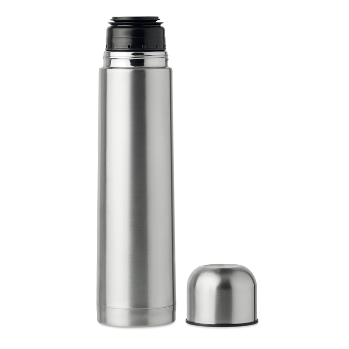 Edelstahl-Thermoskanne in Mattsilber mit Logo, 900 ml