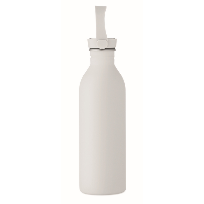 Einwandige Edelstahlflasche, bestehend aus 90% recyceltem Edelstahl und 10% Edelstahl, mit Gummi-Finish für einen sichereren Griff. Integriert einen Deckel aus PP und Edelstahl mit Silikonschlaufe für den einfachen Transport im Alltag. Fassungsvermögen 500 ml, gedacht für Wasser und kalte Getränke im Büro, bei Events oder unterwegs. Praktische Option für Willkommenspakete, Treueaktionen oder Unternehmens-Merchandising.