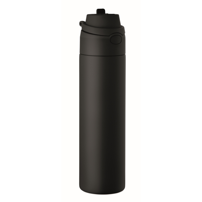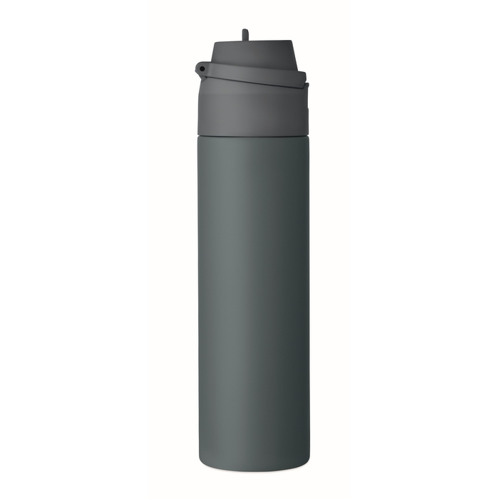 Recycelte Edelstahlflasche mit 2 in 1 Strohhalm 650 ml