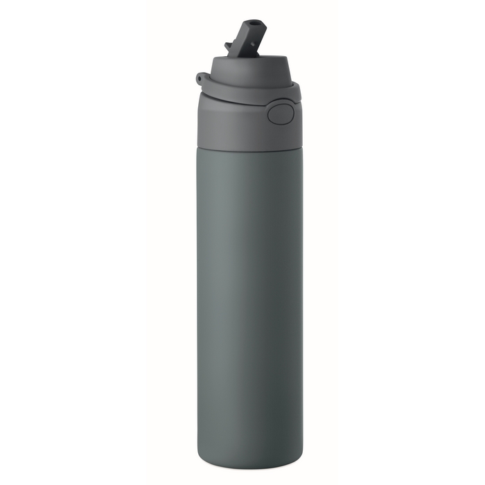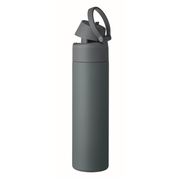 Einwandige Flasche aus recyceltem Edelstahl, konzipiert für den täglichen Einsatz im Büro, bei Events oder unterwegs. Sie verfügt über einen 2 in 1 Strohhalm, sodass je nach Situation direkt oder mit Strohhalm getrunken werden kann. Der PP-Deckel enthält einen Tragegriff für einfaches Transportieren und guten Halt. Tropfsicheres, auslaufsicheres Design, um Verschütten in Taschen oder Rucksäcken zu vermeiden. 650-ml-Kapazität – praktisch für eine konstante Flüssigkeitszufuhr. Eine gute Option für Willkommensaktionen, Schulungen oder Corporate Kits.