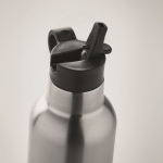 Doppelwandige Isolierflasche aus recyceltem Edelstahl (90 % recycelter Edelstahl und 10 % Edelstahl) mit auslaufsicherem Schraubverschluss und austauschbarem Verschluss mit eingebautem Trinkhalm. Füllmenge: 700 ml.