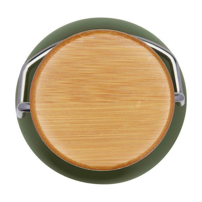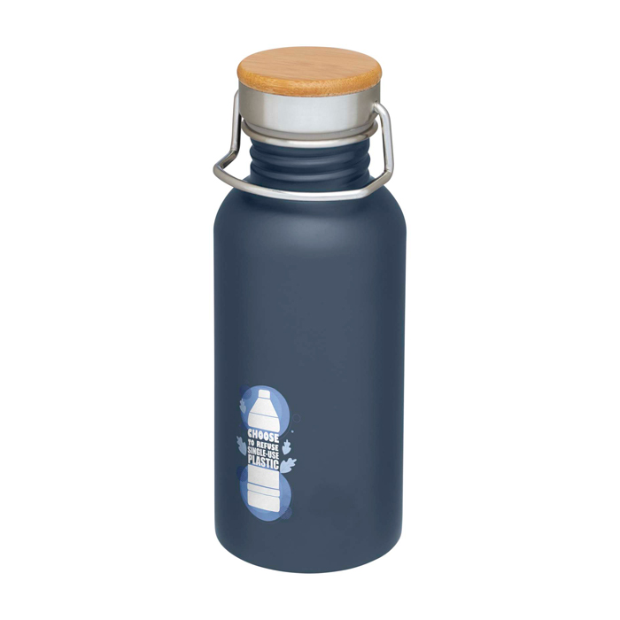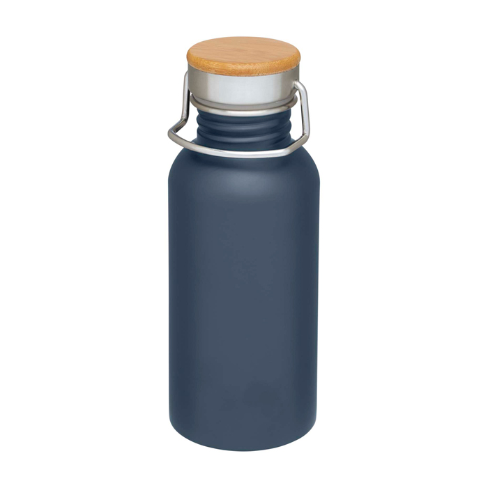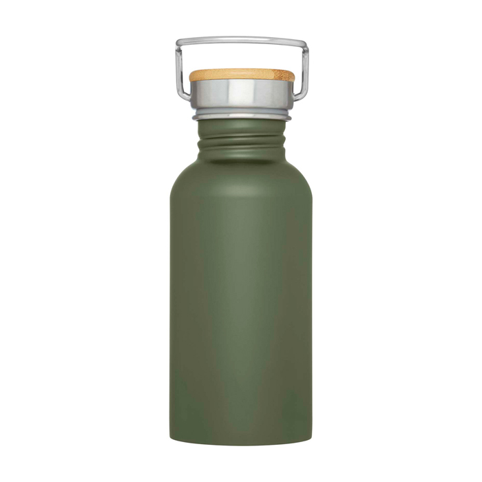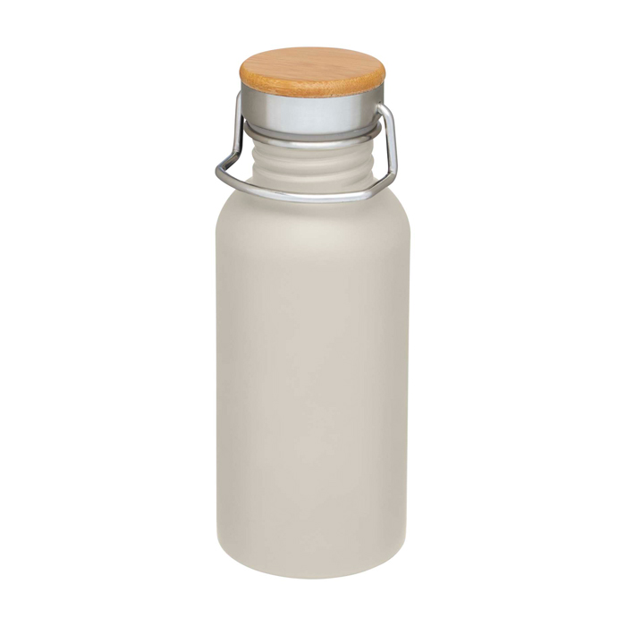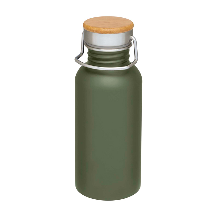 Einschichtige Edelstahlflasche mit Schraubdeckel. Der obere Teil des Deckels besteht aus Bambus und verfügt über einen Henkel, der den Transport erleichtert. Fassungsvermögen: 550 ml. Wird in einer Geschenkbox geliefert.