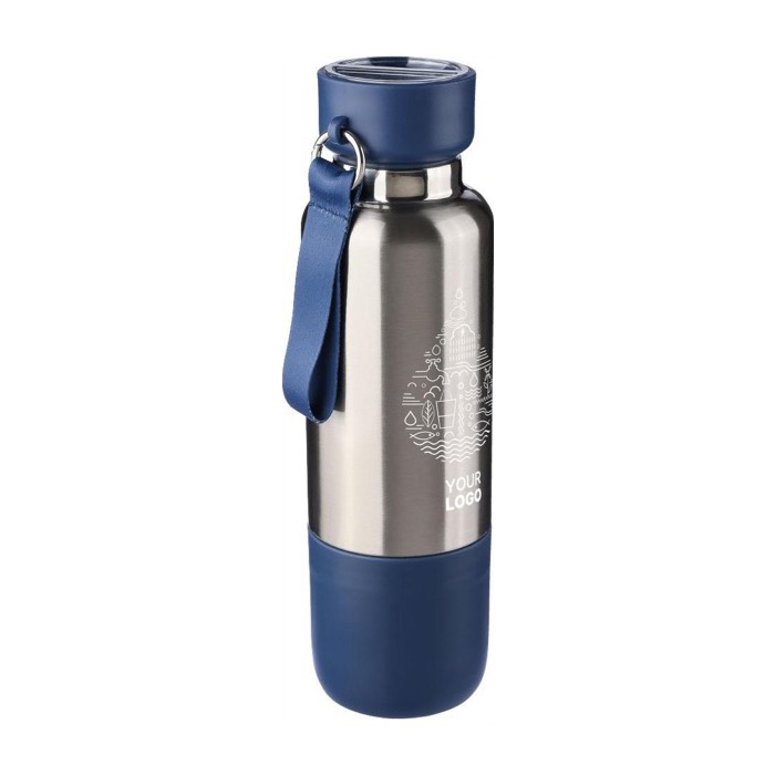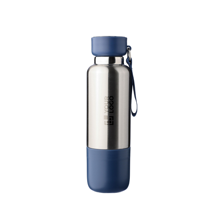 Edelstahlflasche mit Handgelenkschlaufe und Becher im Boden, 500 ml