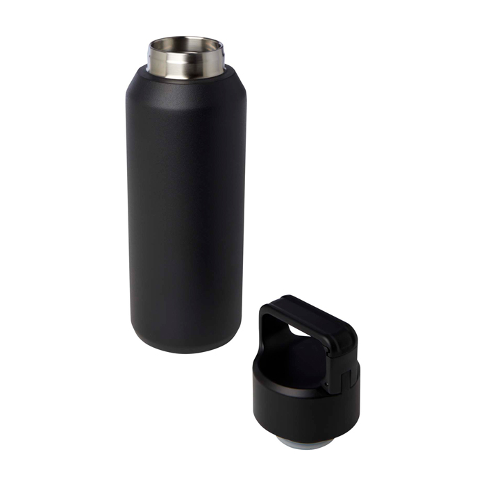 Doppelwandige Edelstahlflasche mit Kupfervakuum-Isolierung und RCS-Zertifizierung. Der Deckel verfügt über einen integrierten Karabiner, mit dem sich die Flasche bequem an einem Rucksack oder Gürtel befestigen lässt. Auch für kohlensäurehaltige Getränke geeignet. Wird in einer Geschenkbox aus recycelter Pappe geliefert. Fassungsvermögen: 600 ml.