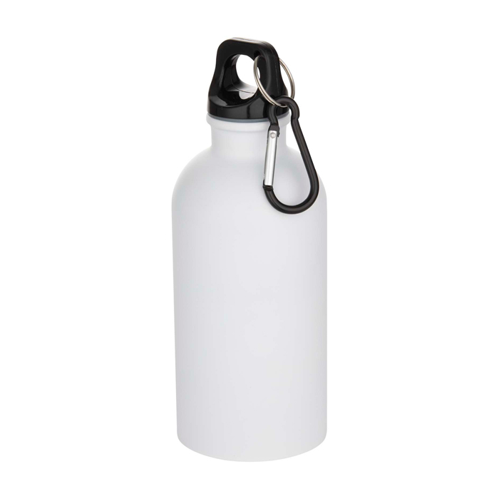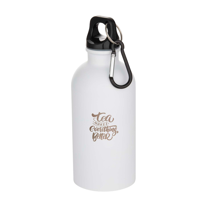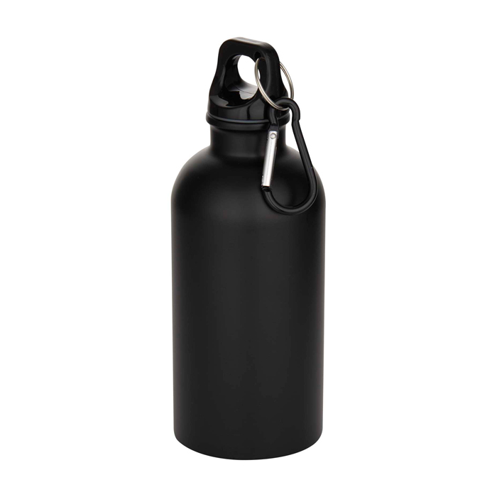 400-ml-Wasserflasche aus mattiertem, recyceltem Edelstahl mit RCS-Zertifizierung – ein leichtes und langlebiges Material. Die einwandige Konstruktion mit Schraubdeckel macht sie zum idealen Begleiter beim Sport, auf Ausflügen oder im Büro. Zudem bietet sie ausreichend Platz für ein Logo. Inklusive robustem Karabinerhaken (nicht zum Klettern geeignet), mit dem sich die Flasche bequem an einer Tasche befestigen und überallhin mitnehmen lässt.