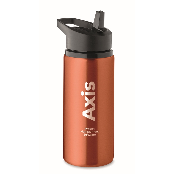 Werbeflaschen aus recyceltem Stahl mit einem einen klappbaren Ausguss, einem Strohhalm und einem Tragegriff. Ein hochwertiges Geschenk für Ihre Mitarbeiter.