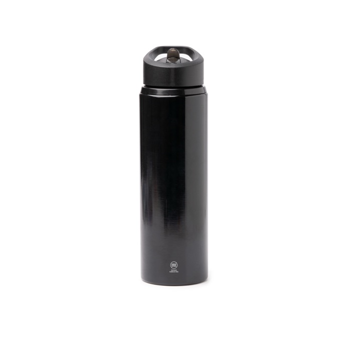 Einwandige Flasche aus recyceltem Edelstahl 304, konzipiert für den Alltag im Büro und unterwegs. Sie verfügt über einen Trinkaufsatz mit klappbarem Strohhalm, damit Sie schnell trinken können, ohne aufzuschrauben, sowie über eine im Deckel integrierte Trageschlaufe für bequemes Mitnehmen. Der Silikonring im Deckel enthält ein auslaufsicheres System, das hilft, Leckagen in Rucksäcken und Taschen zu vermeiden. Weiße Oberfläche, geeignet für Sublimation, und damit ideal für eine vollfarbige Personalisierung mit dem Firmenlogo bei internen Aktionen oder Veranstaltungen.