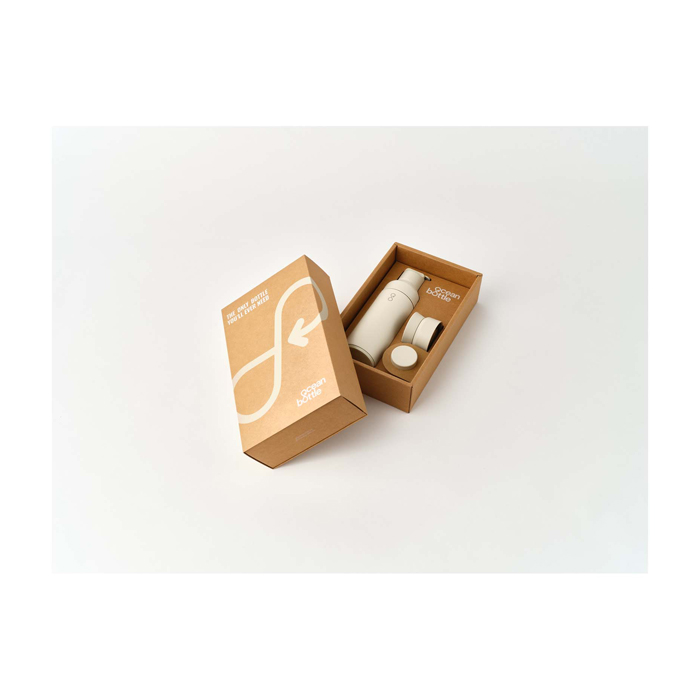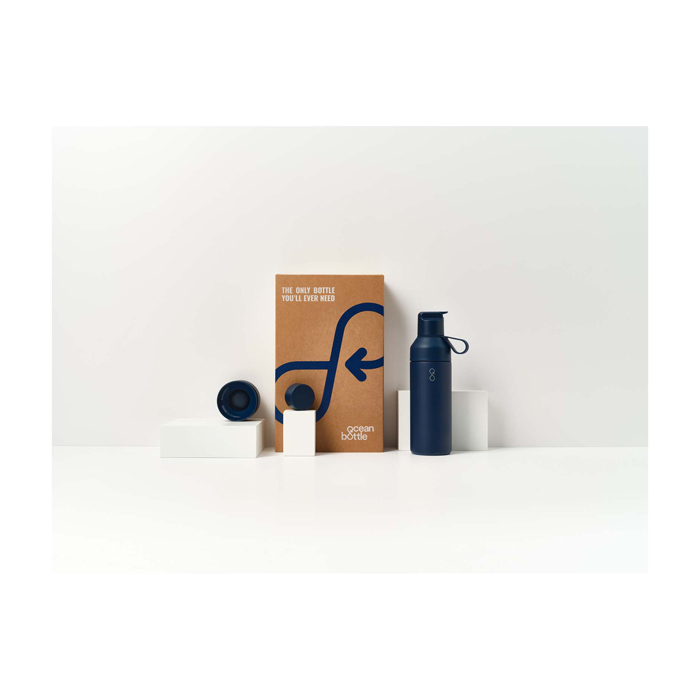 Ocean Bottle Geschenkset (500 ml) mit einzigartigem modularen Deckelsystem, das dank 3 austauschbarer Deckel einen fließenden Übergang zwischen verschiedenen Aktivitäten ermöglicht. Das Set enthält eine Ocean Bottle (500 ml) mit den Deckeln: Original (für den täglichen auslaufsicheren Gebrauch), GO (mit verschließbarem Trinkhalm) und Brew (für heiße Getränke unterwegs). Die doppelte Öffnungsfunktion erleichtert das Befüllen, Reinigen und Hinzufügen von Eis. Hergestellt aus recycelten Materialien, spülmaschinengeeignet und geliefert in einer Geschenkbox aus verantwortungsvoll produziertem Recycling-Karton.