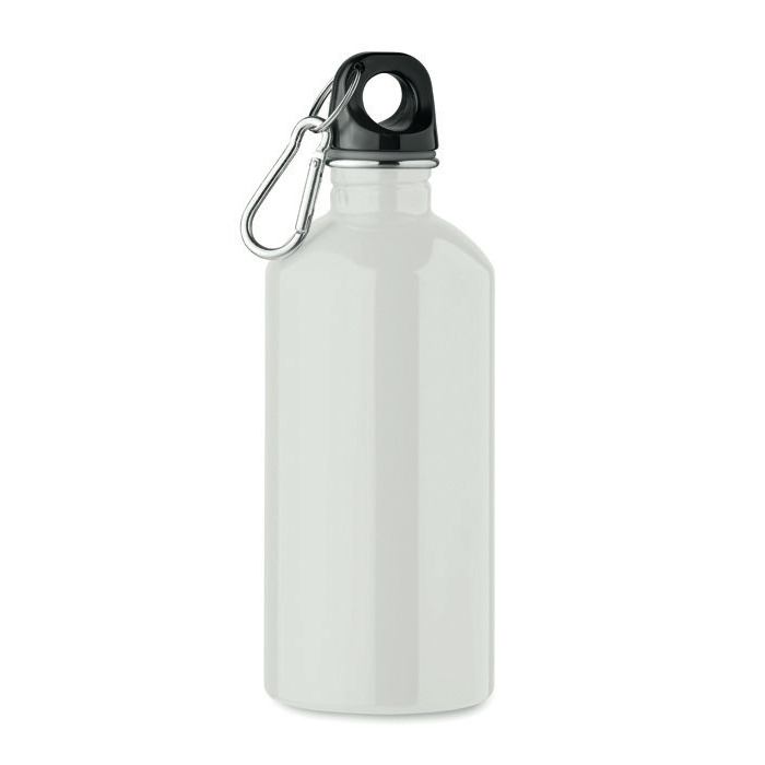 Einwandige Flasche aus recyceltem Edelstahl (90% recycelt und 10% Edelstahl) mit 500 ml Fassungsvermögen und Karabiner zum Befestigen an Rucksäcken oder Taschen. Auslaufsicheres und tropfsicheres Design, um Verschütten unterwegs und im Alltag zu vermeiden. Sublimationsdruck (vollfarbige Kennzeichnung per Thermotransfer) ist nur beim weißen Modell verfügbar. Da sie einwandig ist, kann sie die Wärme des Getränks nach außen übertragen. Praktische Option für Willkommenspakete, Events und Markenaktionen.