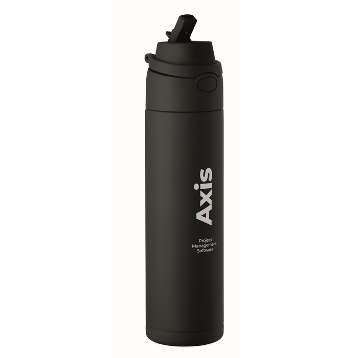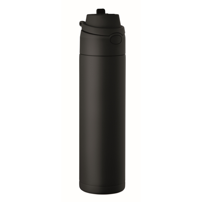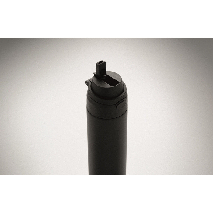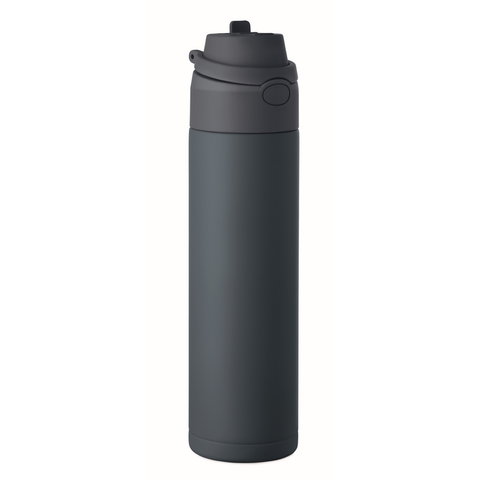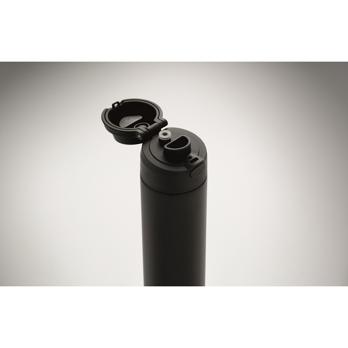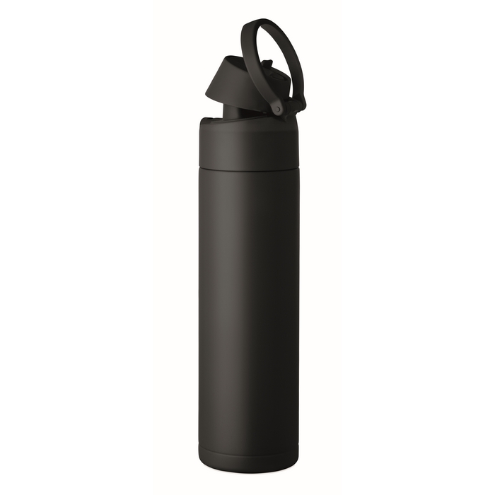 Doppelwandige Flasche aus recyceltem Edelstahl (90% recycelt und 10% Edelstahl) mit einem Fassungsvermögen von 500 ml. Sie verfügt über einen PP-Deckel mit Trageschlaufe für den einfachen Transport sowie einen 2 in 1 Strohhalm, der die Nutzung im Büro, im Auto oder bei Veranstaltungen erleichtert. Der Verschluss ist auslaufsicher und mit einem Tropfschutzsystem ausgestattet, um Verschütten in Taschen oder Rucksäcken zu vermeiden. Praktische Lösung für Willkommenspakete, Loyalty-Aktionen oder Corporate Merchandising.