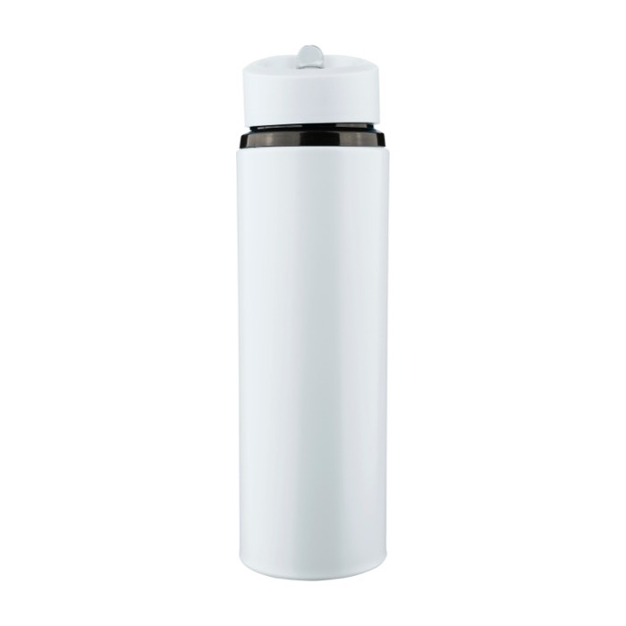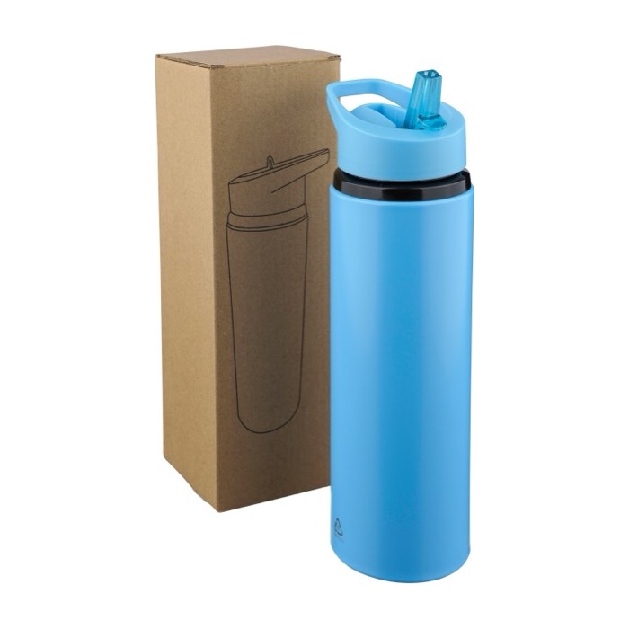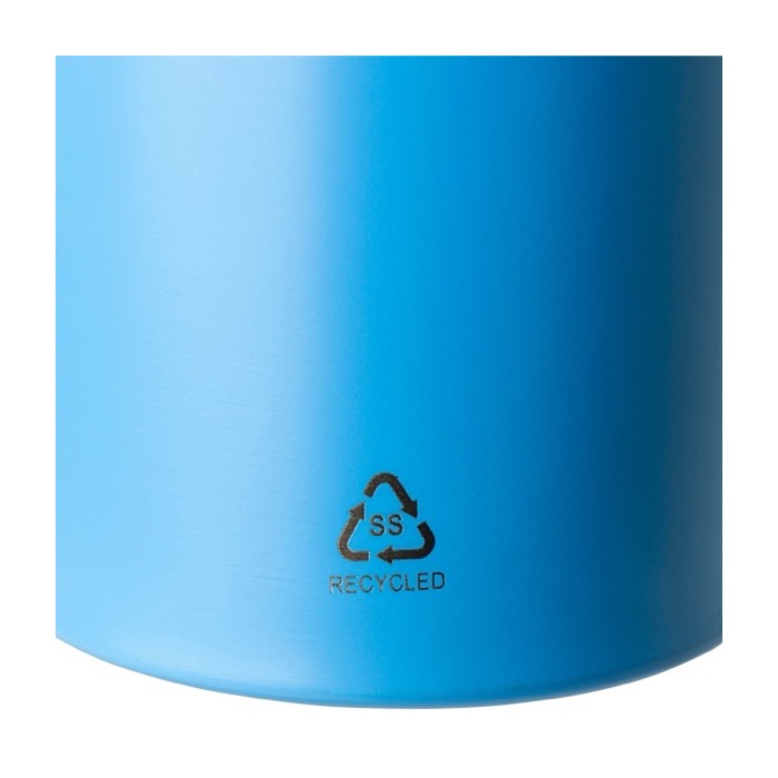 Trinkflasche aus recyceltem Edelstahl 304 mit einem Fassungsvermögen von 500 ml, entwickelt für eine bequeme Nutzung im Alltag. Sie verfügt über einen Kunststoffdeckel mit Tragering, ein klappbares Mundstück und einen integrierten Strohhalm, damit Sie praktisch trinken können, ohne ständig aufzuschrauben. Sie ist nur für kalte Getränke geeignet und damit passend für Büro, Veranstaltungen oder Aktivitäten im Freien. Inklusive per Laser graviertem Logo aus Edelstahl.