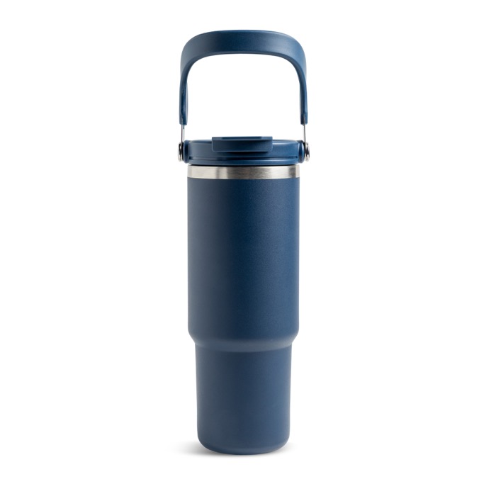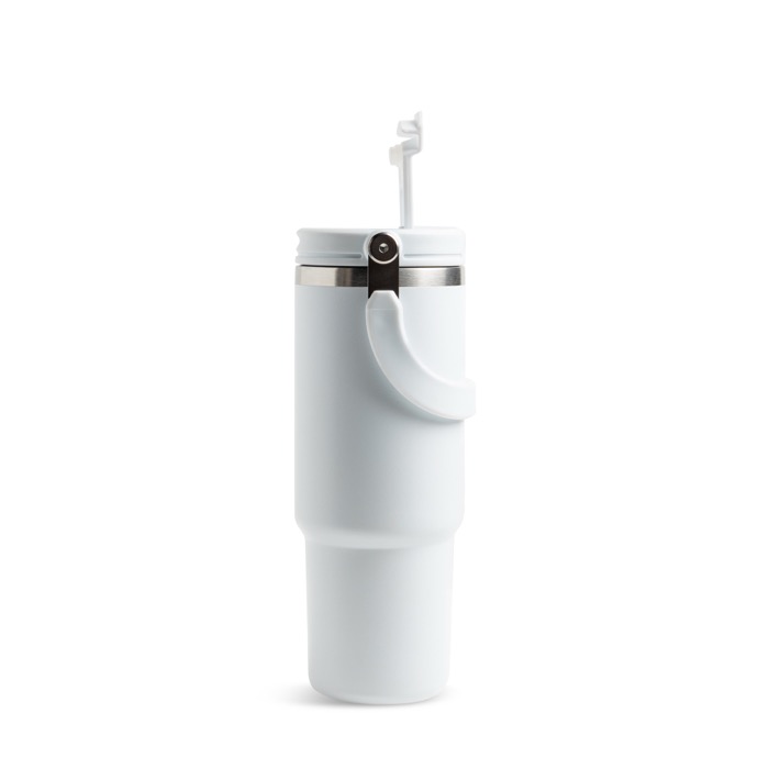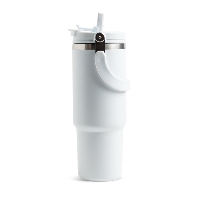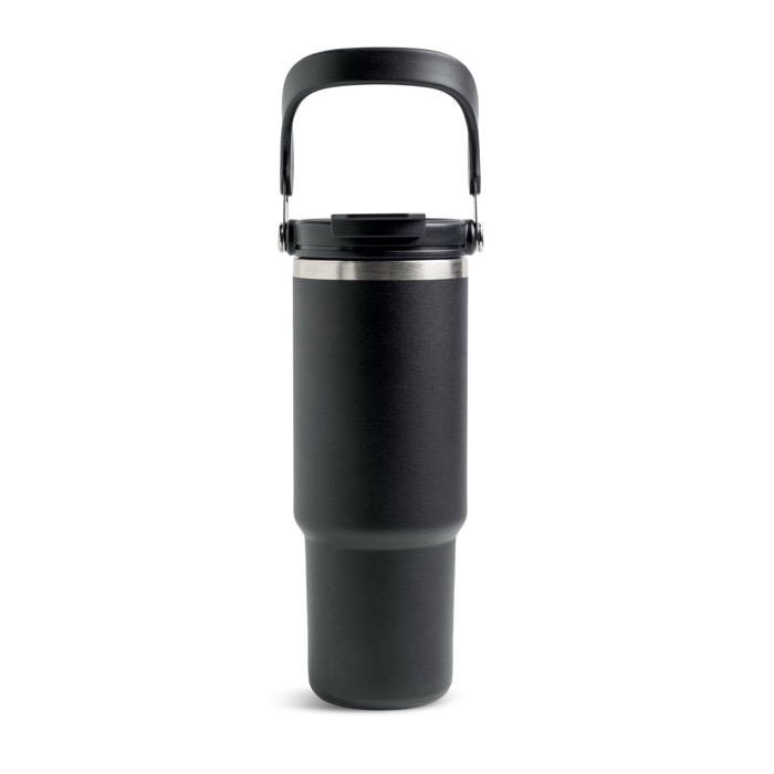 Thermobecher aus Edelstahl mit Doppeldeckel und klappbarem Griff