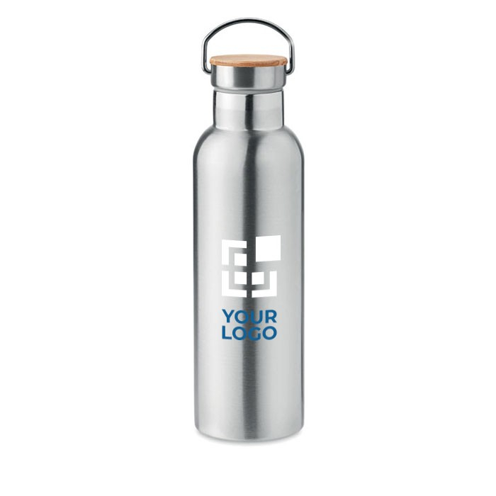 Thermoflasche aus Edelstahl mit Bambusdeckel und Henkel, 750 ml