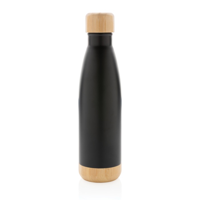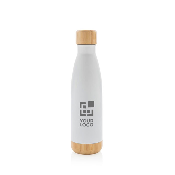 Thermo Trinkflasche mit Bambusdetail auf Deckel und Boden, 520 ml