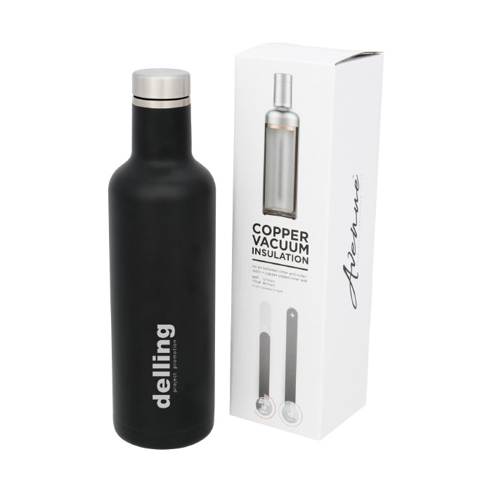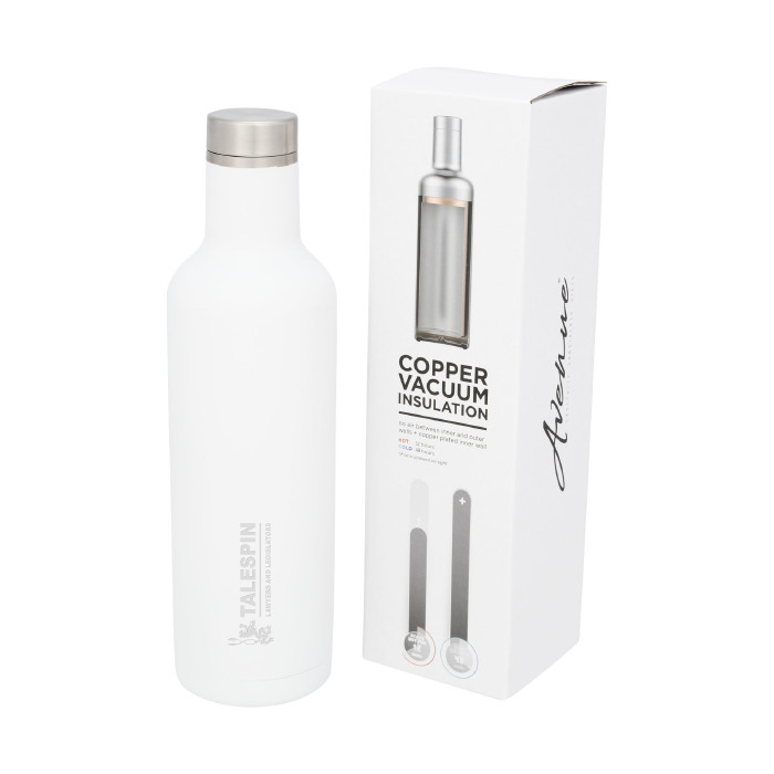 Halten Sie Ihre Getränke mit der Pinto Kupfer-Vakuum-Isolierflasche für 12 Stunden heiß oder für 48 Stunden kalt. Doppelwandig und aus Edelstahl mit der Klasse 18/8. Mit einer Vakuumisolierung und einer verkupferten Innenwand ist Ihr Getränk, abhängig von Ihren Anforderungen, heiß oder eiskalt. Mit Sprüh-Pulverbeschichtung am äußeren Körper. Das Fassungsvermögen beträgt 750ml. Präsentiert in einer Avenue Geschenkschachtel.