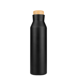 Flasche aus Edelstahl mit einem Fassungsvermögen von 600 ml mit einem Schraubverschluss im imitierten Kork. Die Doppelwand ermöglicht es, zwischen 20h kalt und 24h warmzuhalten.