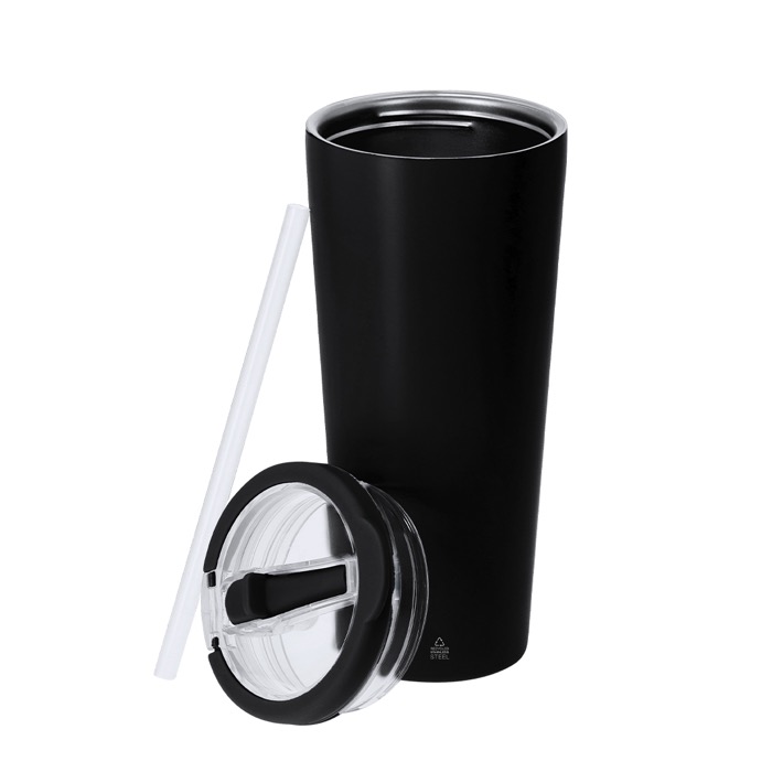 Thermobecher aus recyceltem Edelstahl mit Strohhalm 700 ml