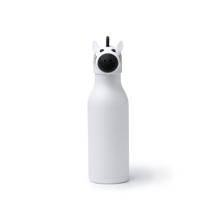 Doppelwandige Thermosflasche mit Korpus aus Edelstahl 304, entwickelt für den täglichen Einsatz und dafür, Getränke länger auf Temperatur zu halten. Enthält einen Verschluss mit dekorativer Tierform aus Kunststoff sowie einen Silikonring, der hilft, Tropfen in Rucksäcken oder auf Schreibtischen zu vermeiden. Das 450 ml Format ist bequem zu transportieren und zu handhaben. Eine praktische Option für Markenaktionen an Schulen, Familienveranstaltungen oder interne Kampagnen.