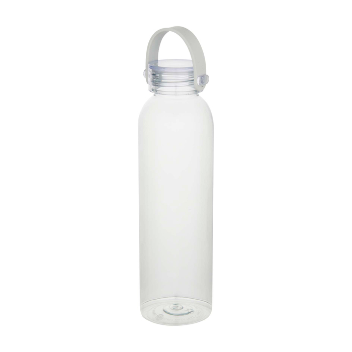 Wasserflasche aus RCS-zertifiziertem RPET mit einem praktischen Silikongriff. Hergestellt gemäß dem von der EFSA zugelassenen PET-Recyclingverfahren. Fassungsvermögen: 630 ml.