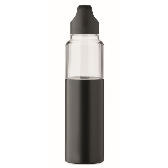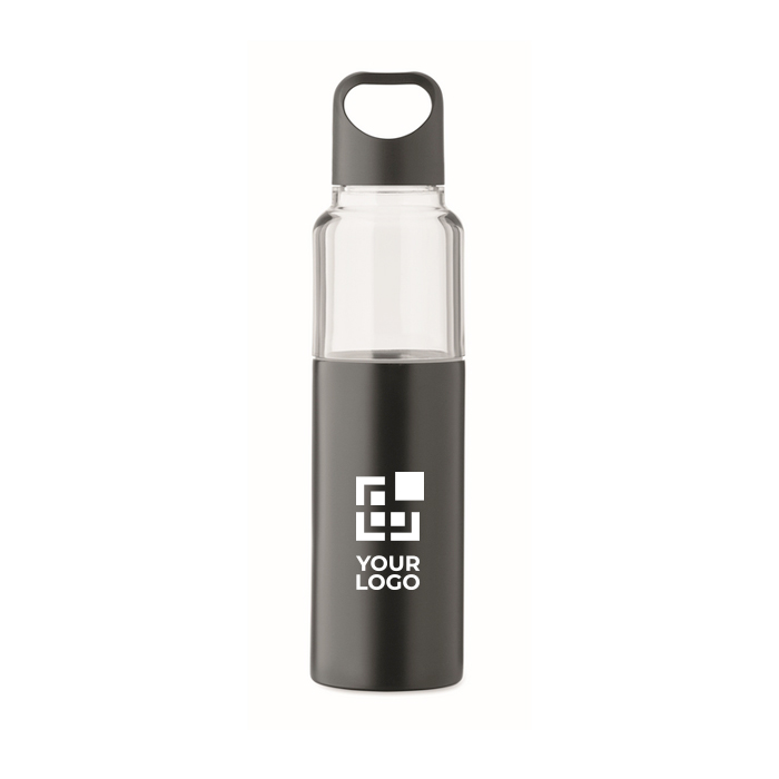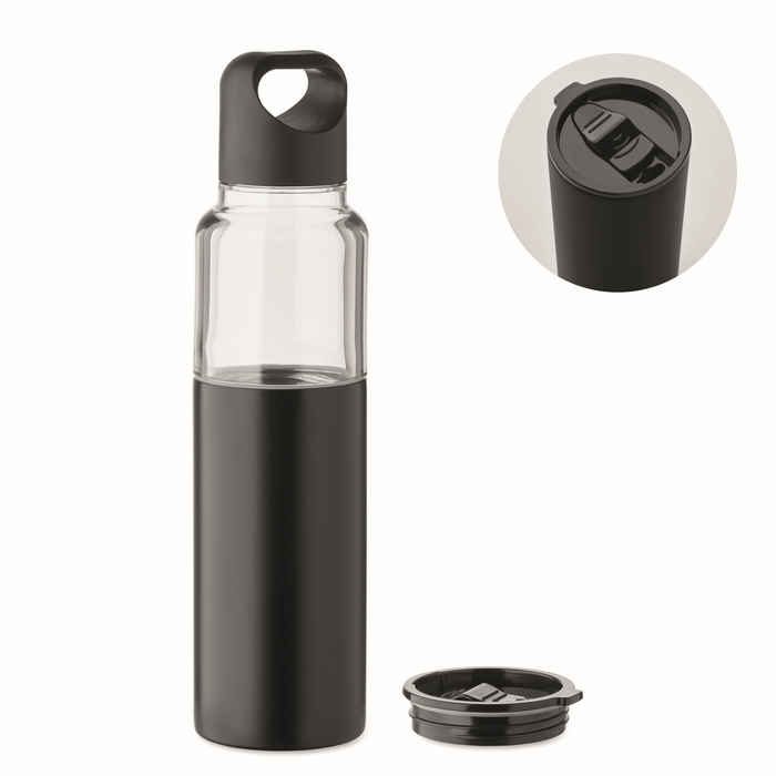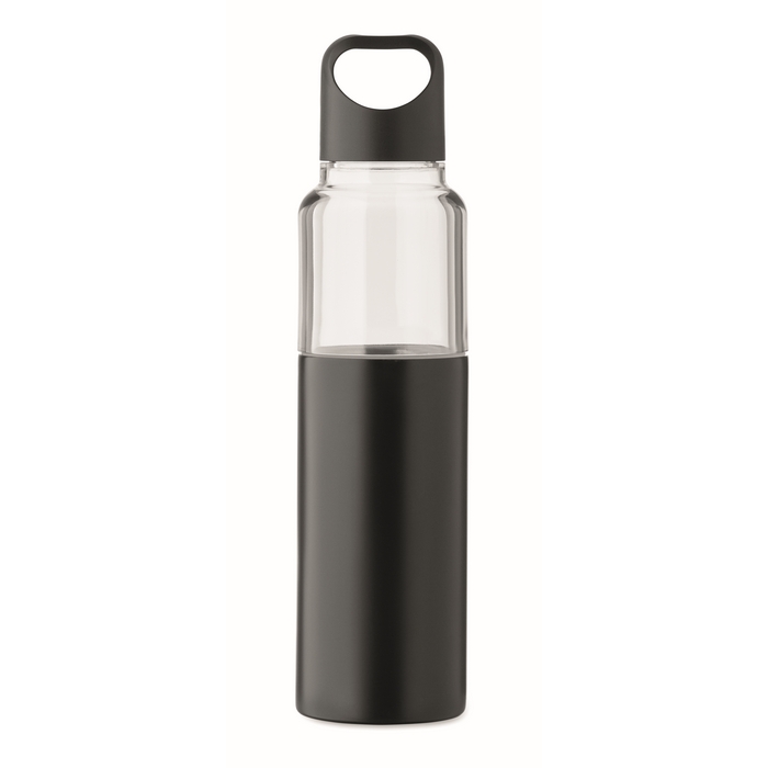 2 in 1 Flasche aus Tritan mit doppelwandigem Becher aus recyceltem Edelstahl. Enthält zwei PP-Deckel, um beide Teile praktisch getrennt zu verschließen. Gesamtkapazität 610 ml und separater Becher mit 350 ml, praktisch zum Ausschenken von Getränken, ohne einen zusätzlichen Behälter mitnehmen zu müssen. Die Kombination aus Flasche und Becher hilft, den Konsum im Büro, bei Veranstaltungen oder unterwegs zu organisieren. Geeignete Option für Willkommenspakete, Loyalitätsaktionen oder Corporate Merchandise.