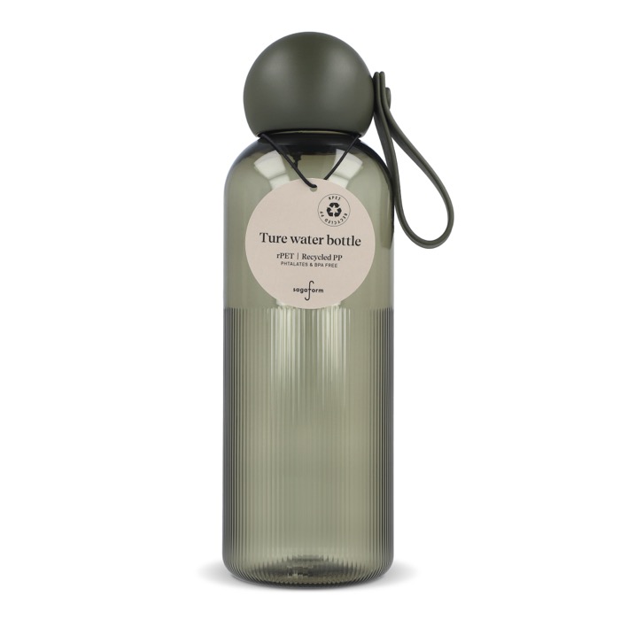 Diese Trinkflasche ist ideal für unterwegs und wird aus recycelten, BPA freien Materialien hergestellt. Der runde Verschluss und die dezenten vertikalen Linien verleihen ihr das typisch funktionale und moderne Sagaform Design. Sie ist in natürlichen Farben erhältlich und lässt sich gut bedrucken. Nicht spülmaschinengeeignet.