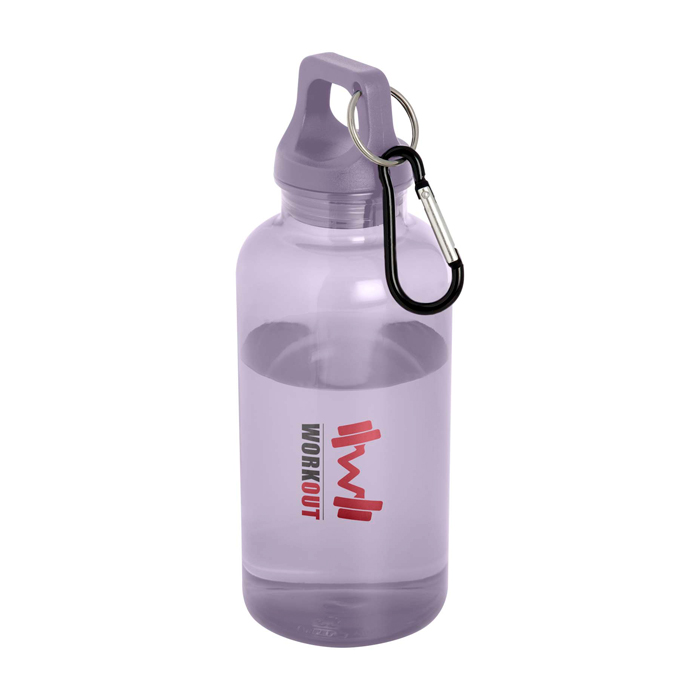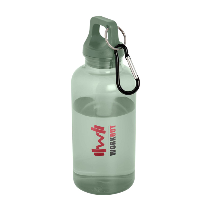 Mit dieser robusten und dennoch leichten 400 ml Wasserflasche aus recyceltem Kunststoff sind Sie immer gut mit Flüssigkeit versorgt. Sie ist der perfekte Begleiter beim Sport, auf Tagesausflügen oder im Büro. Die einwandige Oregon Flasche hat einen drehbaren Deckel und bietet viel Platz für ein Logo Ihrer Wahl. Der mitgelieferte Karabinerhaken (nicht zum Klettern geeignet) kann sicher an einer Tasche befestigt werden, damit die Flasche nicht verloren geht. Die Flasche ist BPA-frei und nach dem deutschen Lebensmittel- und Bedarfsgegenständegesetz (LFGB) sowie nach REACH auf Phthalate geprüft und zugelassen. Der Deckel und der Körper bestehen aus 100 % recyceltem Kunststoff.