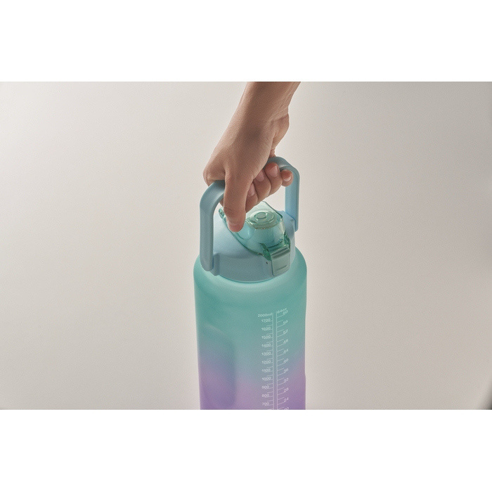 - RPET-Flasche 2000 ml mit Klappdeckel und Griff
