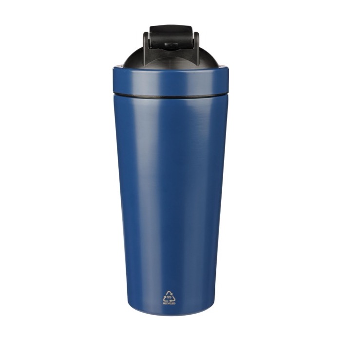 Sportflasche aus recyceltem Edelstahl mit Mischkugel und Schraubverschluss. Eine ideale Option, um deine Marke beim Vor- und Nach-Workout sichtbar zu machen.