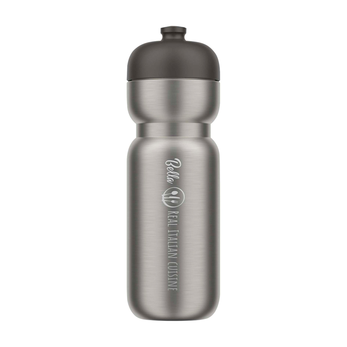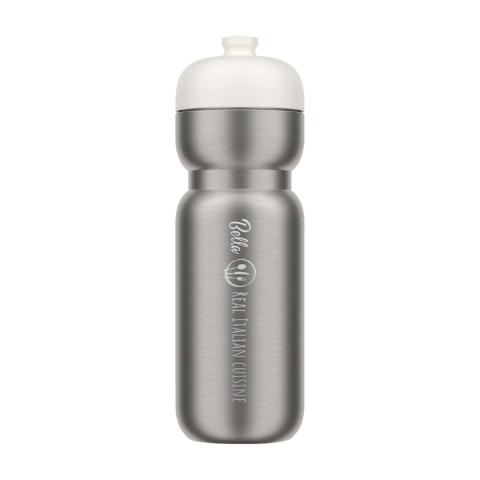 Robuste und bequeme Edelstahlflasche, einhändig bedienbar, auslaufsicher und spülmaschinengeeignet – ideal für Ihre Sportroutine.