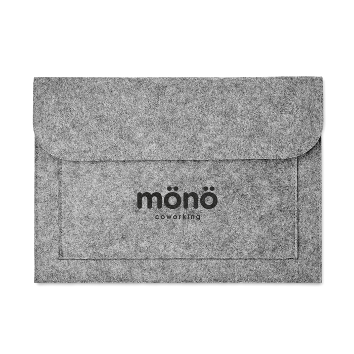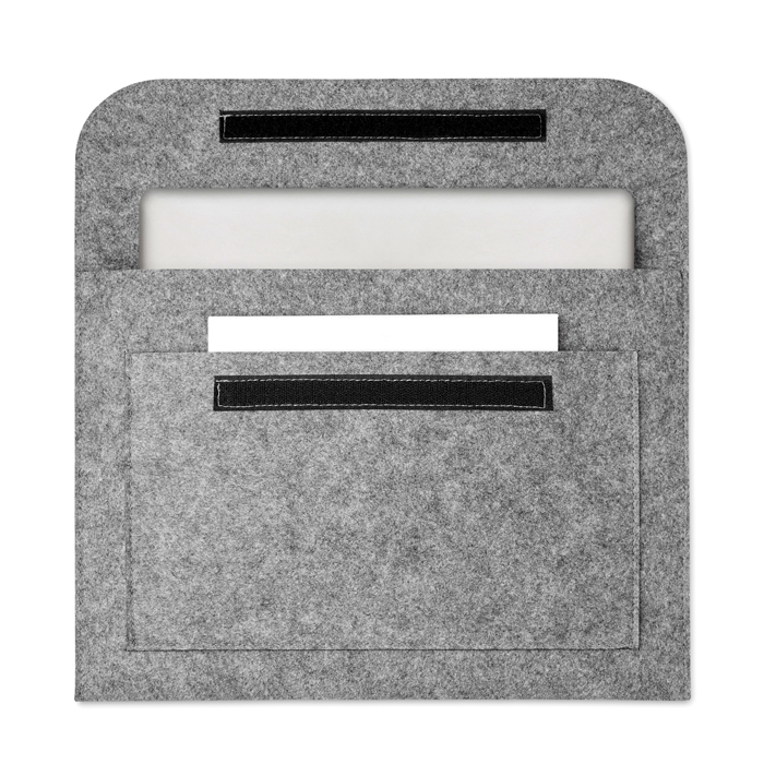 15'' Laptophülle/Dokumententasche aus RPET Filz (2 mm Stärke). Mit Fronttasche und Klettverschluss.
